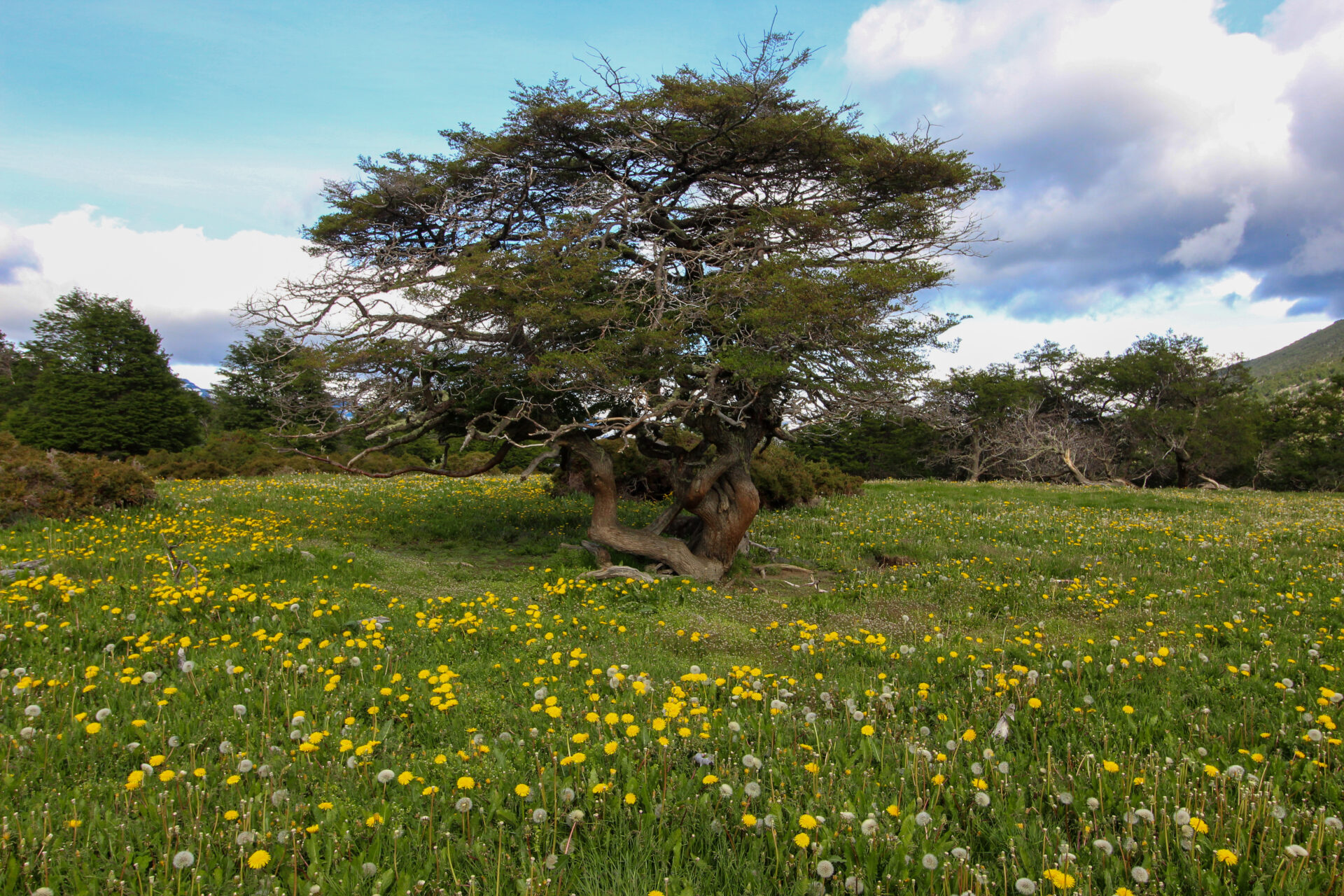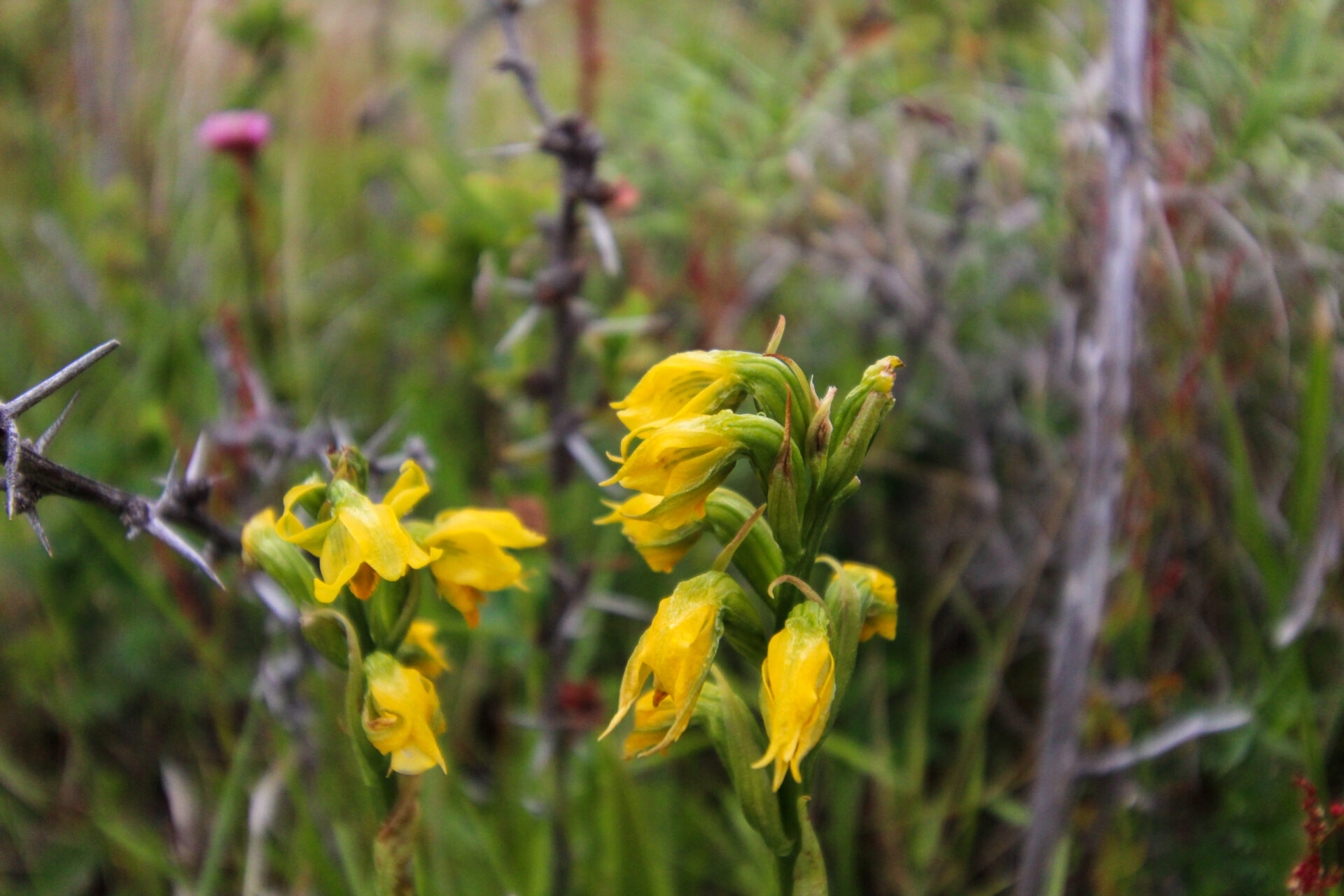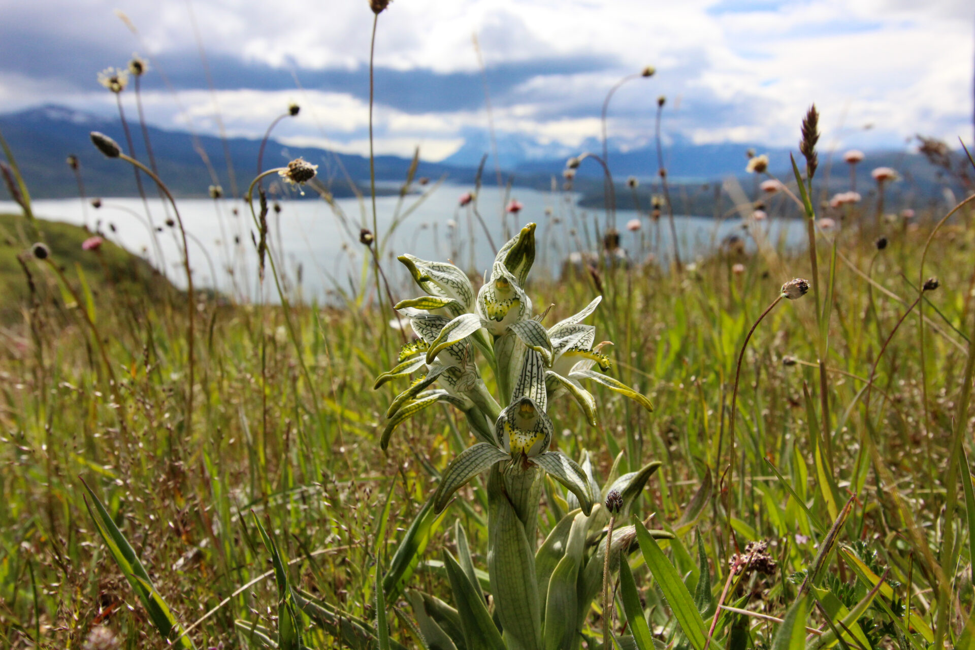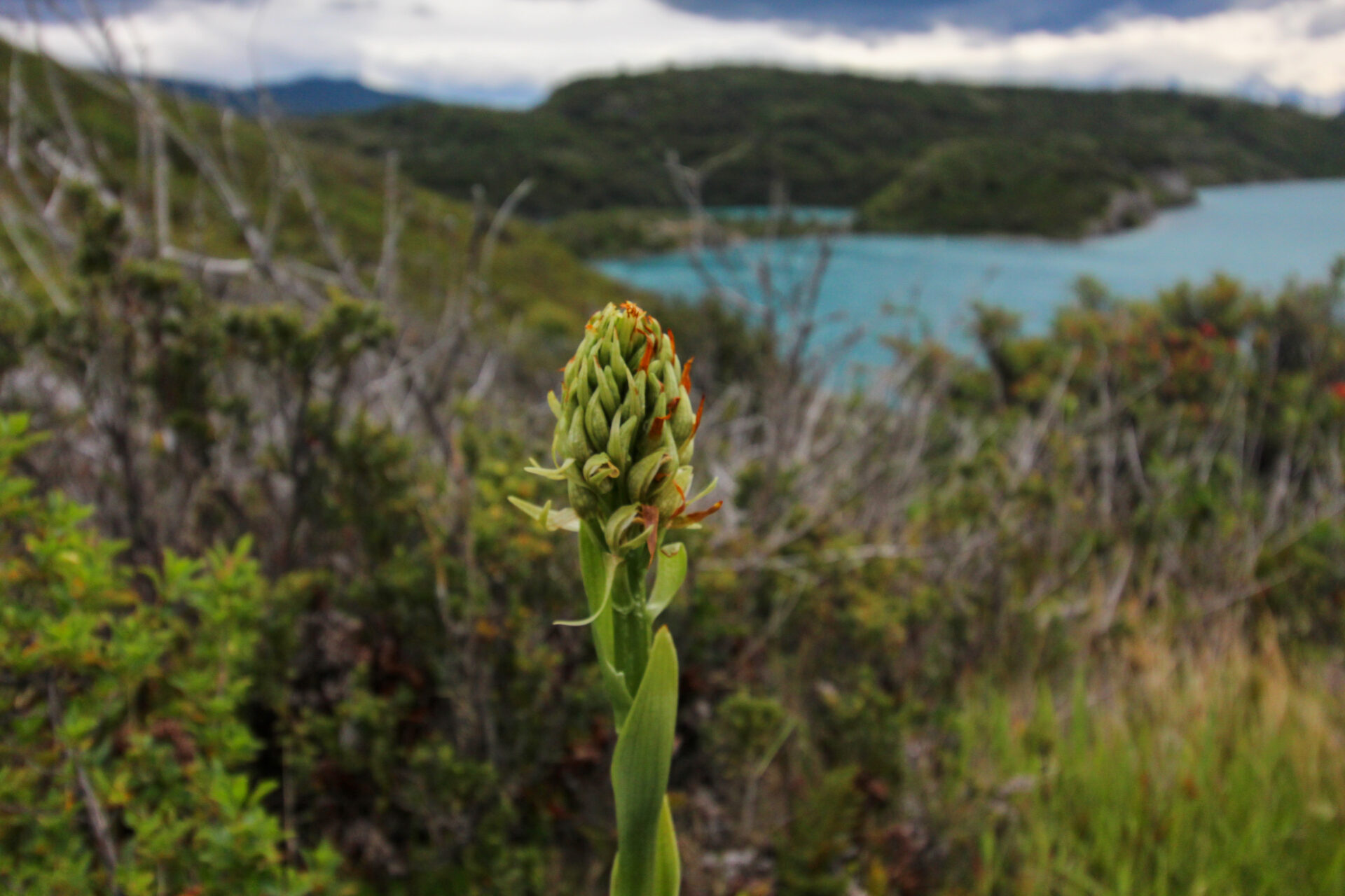 El sendero serpenteaba entre bosques de lengas, en pleno apogeo primaveral, con flores acompañándonos a cada paso: contamos al menos seis especies de orquídeas asomando entre la humedad del bosque. A ratos el camino se abría y dejaba ver el paisaje desde lo alto, como pequeñas ventanas al territorio que íbamos conquistando paso a paso.