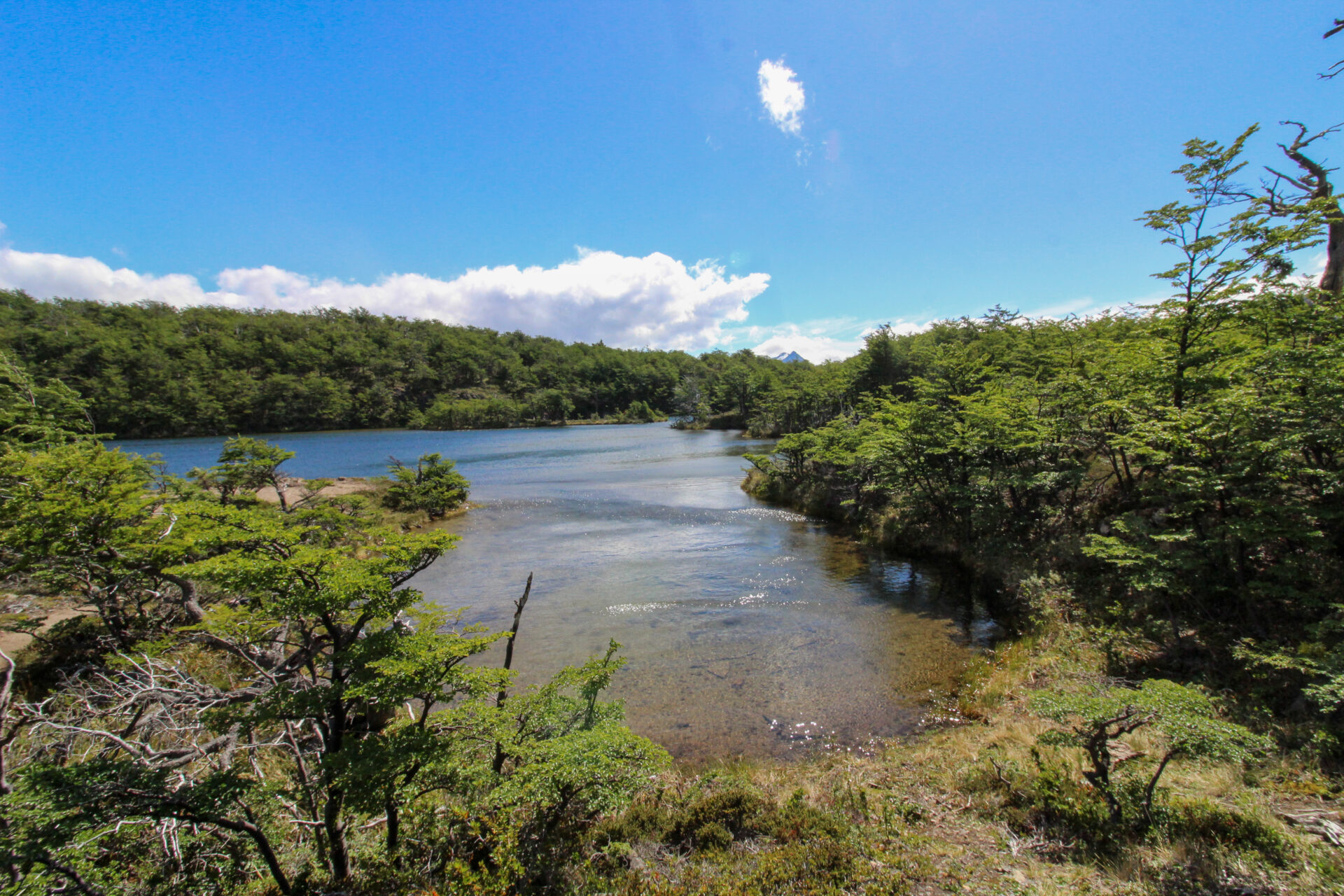 Quizás fue el color de la laguna lo que primero nos detuvo. Ese verde azulado del agua, contrastando con la exuberante vegetación que la rodeaba, resaltaba bajo los rayos de sol filtrándose entre las nubes. Había algo casi tropical en la escena, inesperado en medio de la Patagonia. Nos quedamos unos minutos allí, en la orilla de esa laguna escondida, con el sol calentándonos la espalda mientras el bosque nos resguardaba de los fuertes vientos patagónicos. Y pensé: «Qué ganas de simplemente zambullirme y quedarme aquí para siempre». Al final, entendí que la Patagonia ya se había quedado conmigo. Grabada en mi espíritu para siempre.