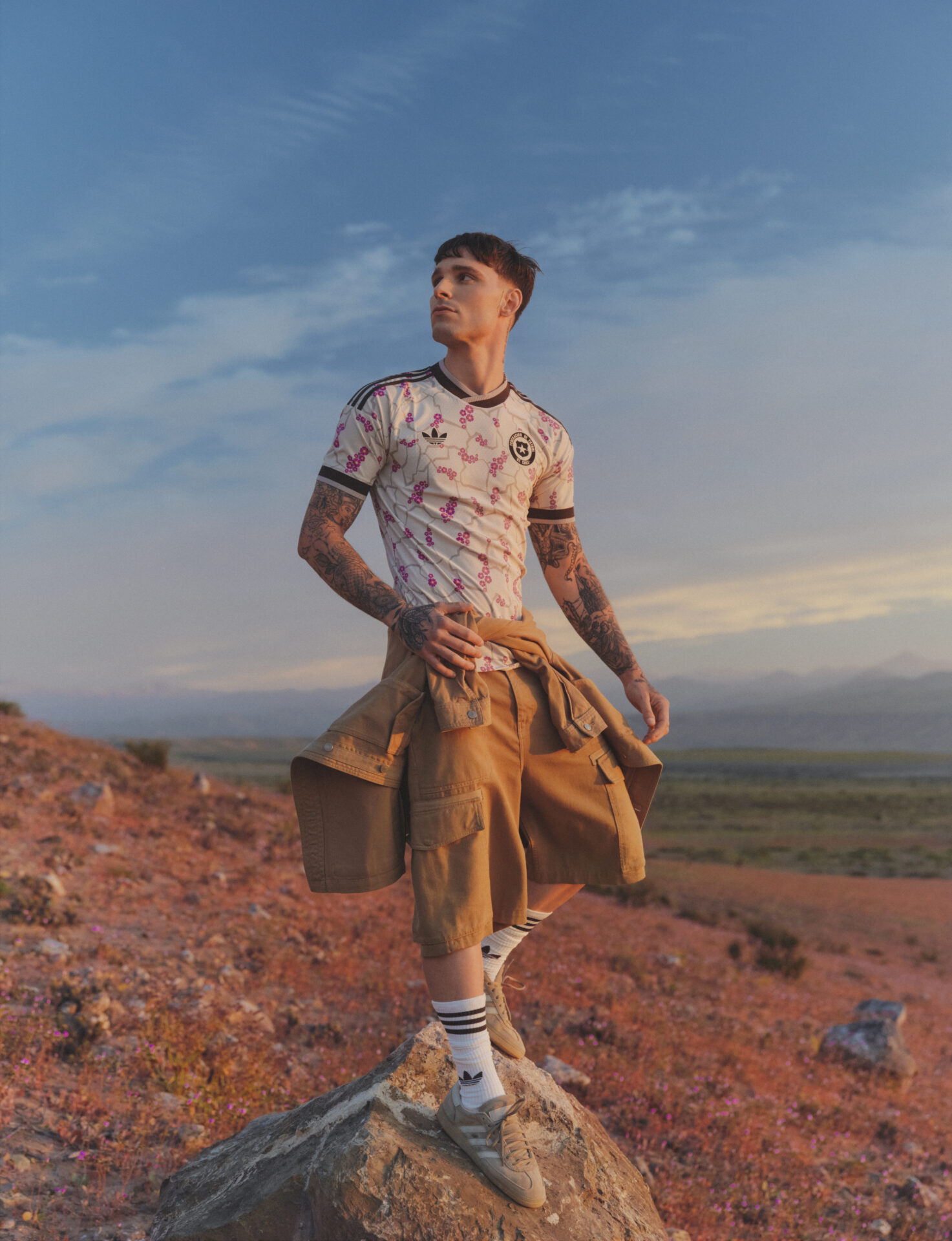 Bajo esa premisa, adidas presenta la nueva camiseta de visitante de la Selección Chilena, una propuesta que se aleja de lo meramente deportivo para instalarse como una declaración cultural. Inspirada en el desierto florido, uno de los fenómenos naturales más sorprendentes del planeta, esta indumentaria se construye a partir del concepto“De Chile para el mundo”, una invitación a entender el territorio no solo como paisaje, sino como origen de identidad y cultura.