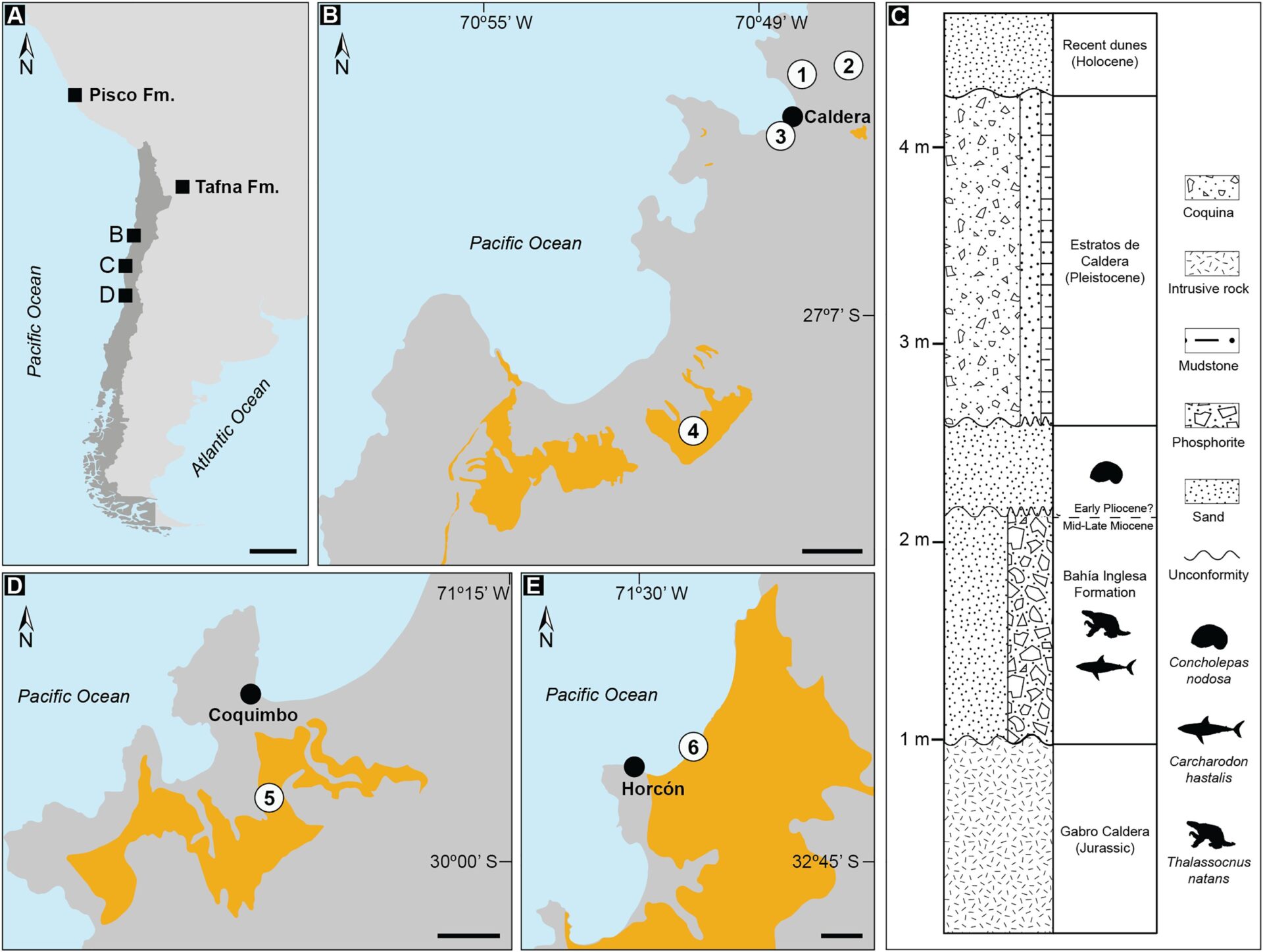 El ejemplar analizado y publicado en el nuevo estudio pertenecen a la especie Thalassocnus natans y fueron descubiertos al norte de Caldera, en la Región de Atacama, en niveles fosilíferos de la Formación Bahía Inglesa. Su excepcional estado de preservación —con cráneo y elementos postcraneales asociados— lo convierte en un objeto de estudio único, ya que se trata del esqueleto de perezoso marino más completo recuperado hasta ahora en Chile.