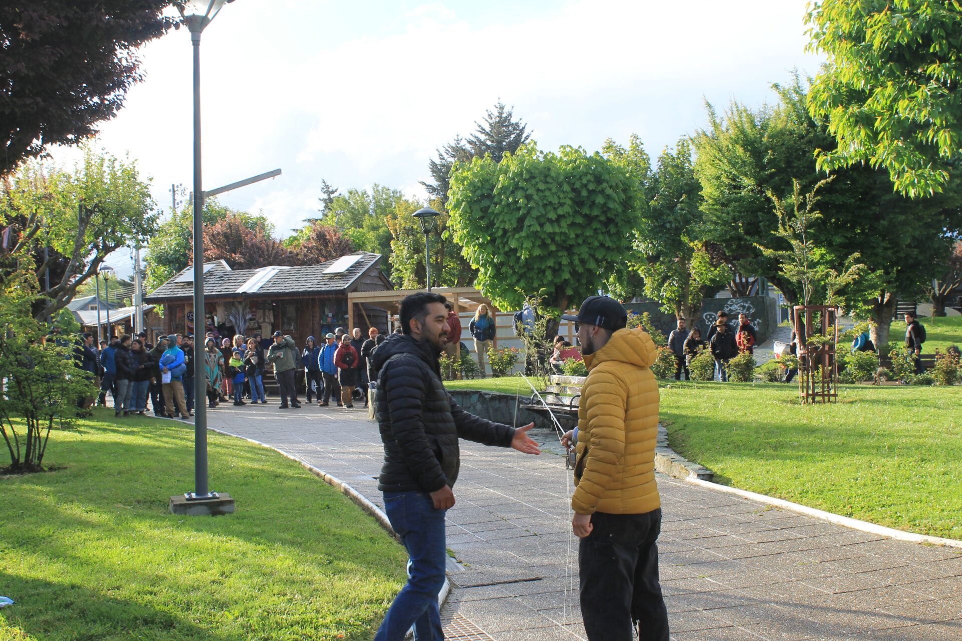 La apertura del primer taller de reparación de waders en Sudamérica contó con entretenidas actividades que invitaron a la comunidad a sumergirse en el mundo de la pesca con mosca: desde comprender la magia que conlleva realizar nudos en el anzuelo de la caña, hasta una competencia de casteo urbano en la plaza de Coyhaique para cerrar la jornada.