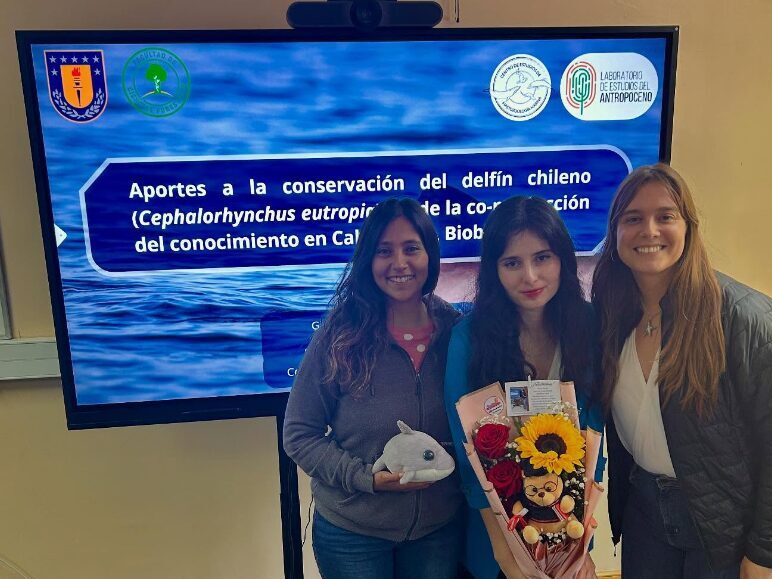 La comunidad costera de Caleta Llico, en la Región del Biobío, se convirtió en un ejemplo de colaboración entre ciencia y saberes locales. Esto fue gracias a una investigación desarrollada por Gierke Medina Rojas, una ex estudiante de la carrera de Ingeniería en Conservación de Recursos Naturales de la Universidad de Concepción. En conjunto con el Centro de Estudios de Mastozoología Marina (CEMM) y con el apoyo y financiamiento de The Nature Conservancy realizaron la investigación titulada “Aportes a la conservación del delfín chileno (Cephalorhynchus eutropia) desde la co-producción del conocimiento en Caleta Llico, Biobío”, la cual integró el trabajo conjunto entre la comunidad y la ciencia para promover la conservación del único cetáceo endémico de Chile.