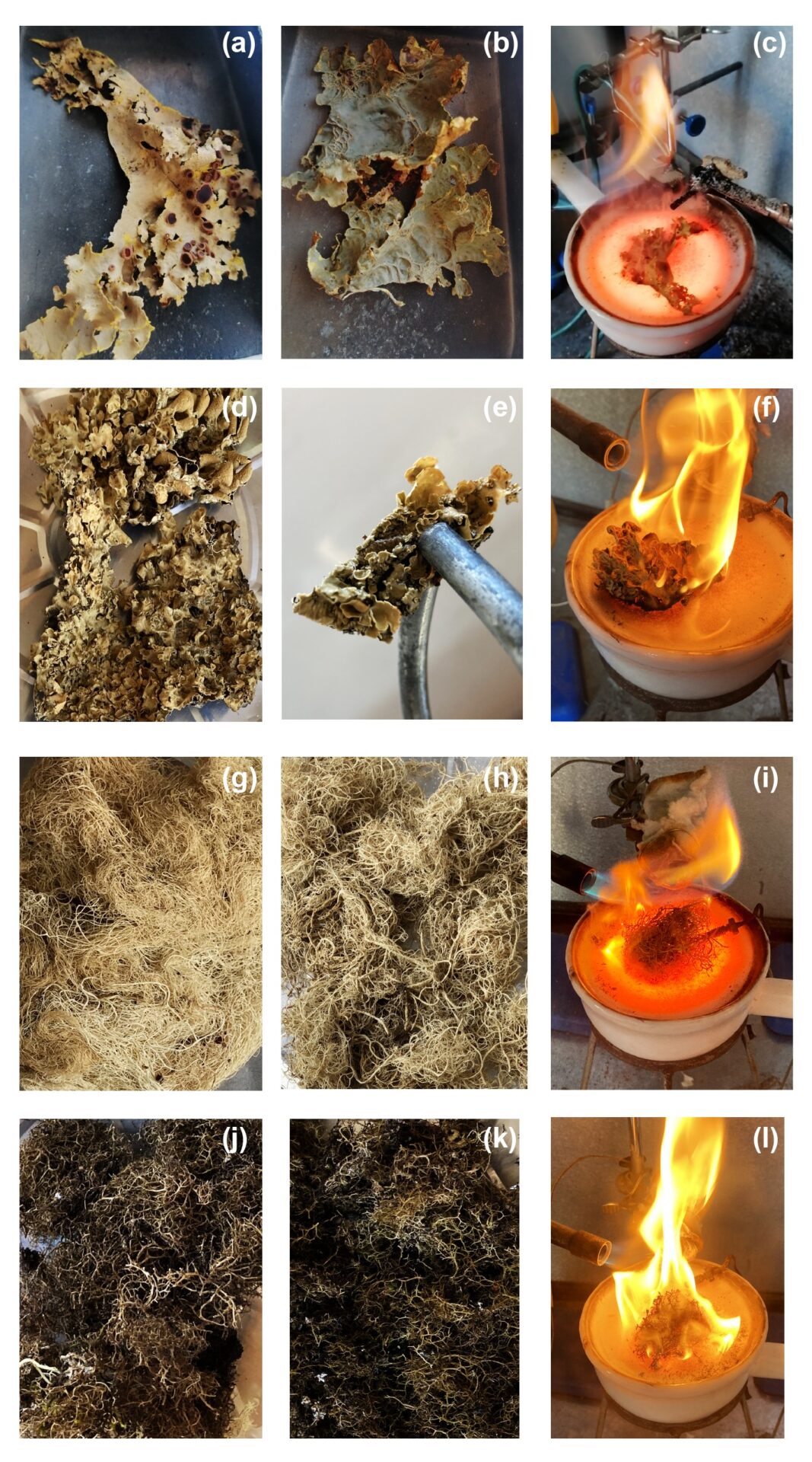 Para profundizar en este escenario, el equipo investigador realizó un experimento analizando cuatro especies de líquenes representativos de la zona preandina de la Cordillera de los Andes, presentes en zonas cercanas al Parque Nacional Conguillío, Región de La Araucanía. Para ello, se escogieron dos especies foliosas, cuya forma es similar a hojas sobre la corteza (Pseudocyphellaria berberina y Nephroma antarcticum), y dos fruticosas, de aspecto similar a pequeños arbustos colgantes (Coelopogon epiphorellus y Protousnea magellanica), evaluando su comportamiento frente al fuego en condiciones controladas de laboratorio.