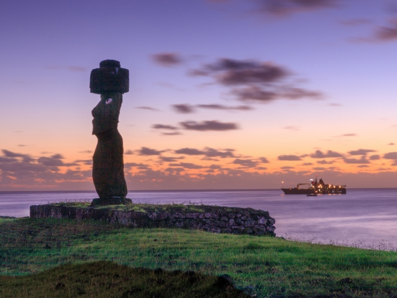 «No tenemos fechas exactas de la llegada de los primeros inmigrantes, de los primeros que llegaron a Rapa Nui, pero probablemente no fue Hotu Matu’a. La tradición oral marca un inicio a partir de este personaje, que se convierte en el héroe civilizador, pero probablemente llegaron otros antes. De hecho, en la misma tradición oral se dice que él envió a los primeros exploradores a partir de un sueño. Allá en Hiva, que probablemente es Marquesa, y de ahí partieron hacia el sureste. Él envía a estos exploradores, y se encuentran según la leyenda con un par de personajes que ya habían estado antes. Y además se habla de que en el tiempo del abuelo de Hotu Matu’a, él ya había enviado a sus hijos a explorar hacia el este, siempre hacia el este. O sea, hacia acá, hacia el continente Sudamérica», profundiza Ramírez.