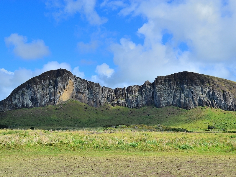 «En Rapa Nui hay distintos tipos de roca en cuanto a su origen, y en particular el volcán Rano Raraku, que es la cantera de los moái. Tiene una roca muy especial, que fue la razón de por qué decidieron hacer al final los moái en esa zona. Era una roca mucho más fácil de tallar, un poco más blanda, porque la roca volcánica de los otros volcanes era mucho más dura», indica Carolina Gómez Fontealba, geóloga y magíster en Ciencias, mención Geología de la Universidad de Chile.