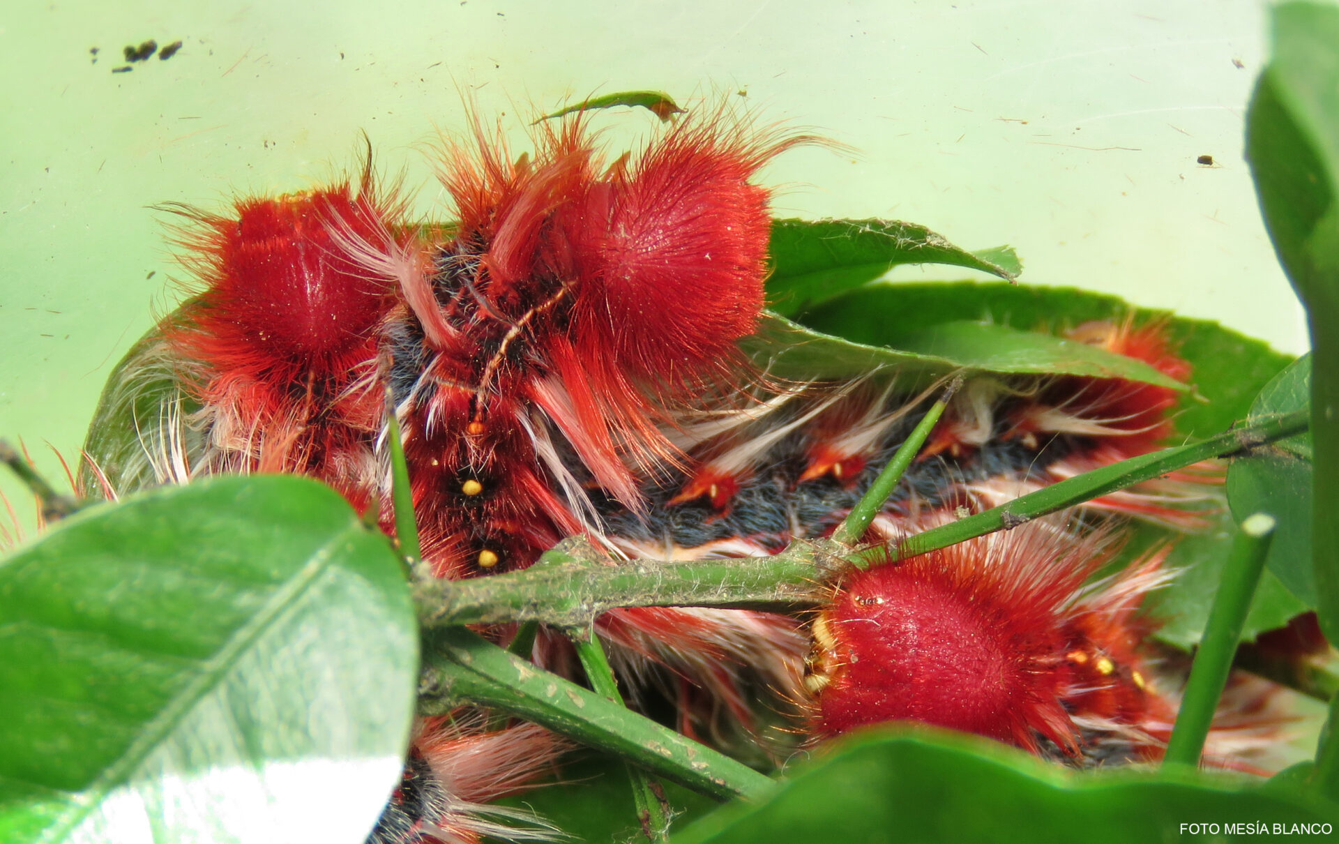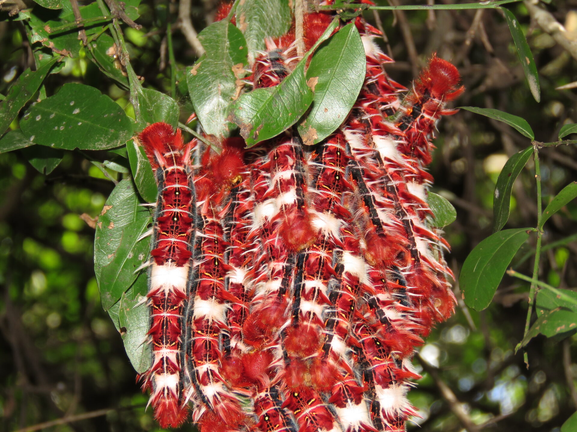 Recién en octubre comenzarán a deambular por las ramas de los árboles en busca de alimento. Lejos del imaginario popular que puede confundir a las orugas como una fase poco vistosa, la bandera argentina es una explosión de estridencias de destinos rojos con pelos largos blancos y negros que la transforman en una suerte de oruga punk preparada para desfilar en el carnaval carioca. Como táctica para defenderse de sus depredadores, las orugas permanecen todas juntas y dan la sensación, a primera vista, de ser un sólo cuerpo.