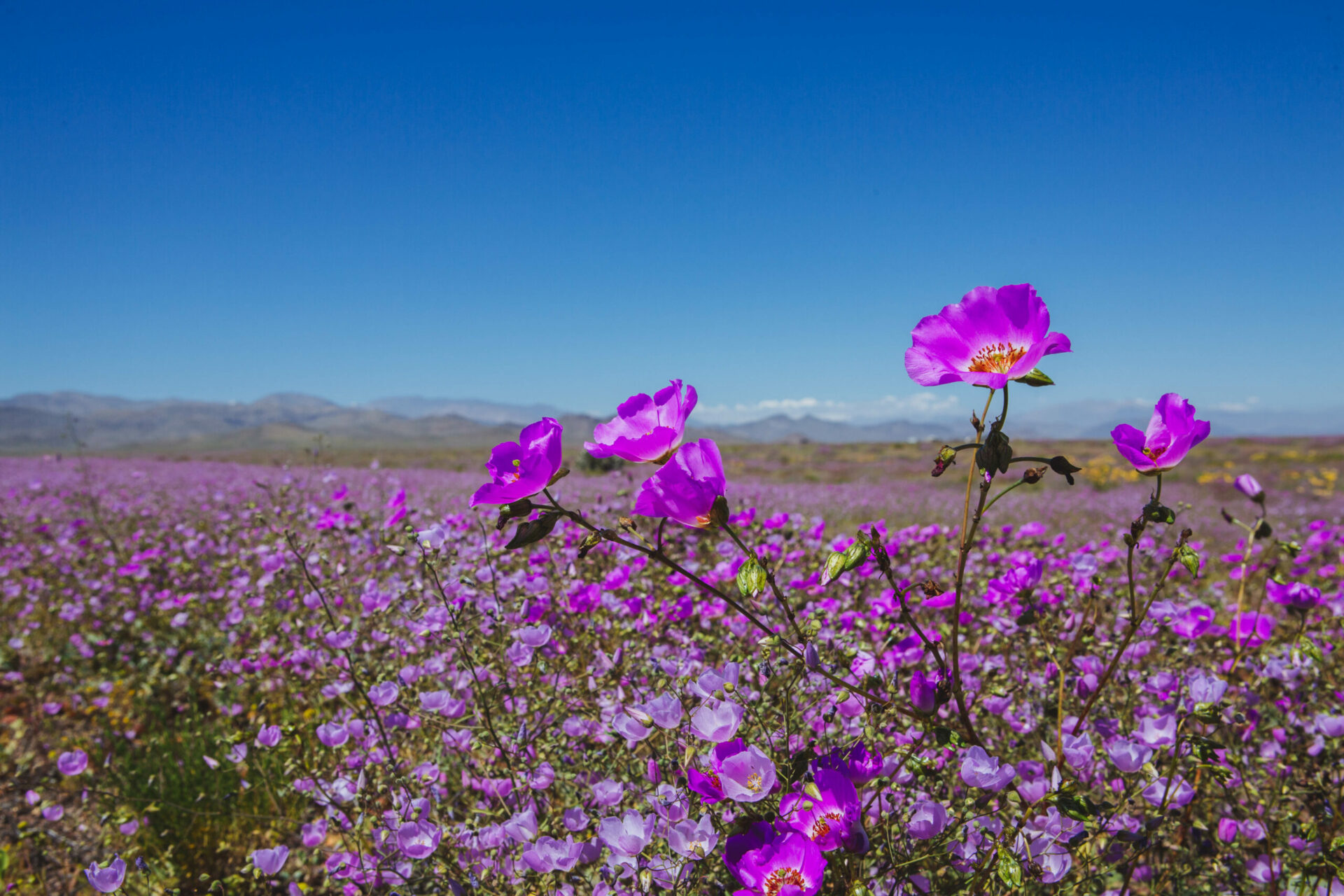 En el planeta hay pocos lugares donde la tierra árida se transforma en un tapiz de colores. Australia, Estados Unidos, Sudáfrica, Perú y Chile son algunos de los escenarios donde ocurre este raro milagro natural: el desierto florido. Pero es en Chile donde este fenómeno alcanza una fuerza casi mística. En el corazón del desierto de Atacama —el más árido del mundo—, los llanos y serranías despiertan bajo una lluvia inesperada, y el paisaje se cubre de violetas, amarillos, azules y blancos que parecen desafiar la sequedad del entorno.
