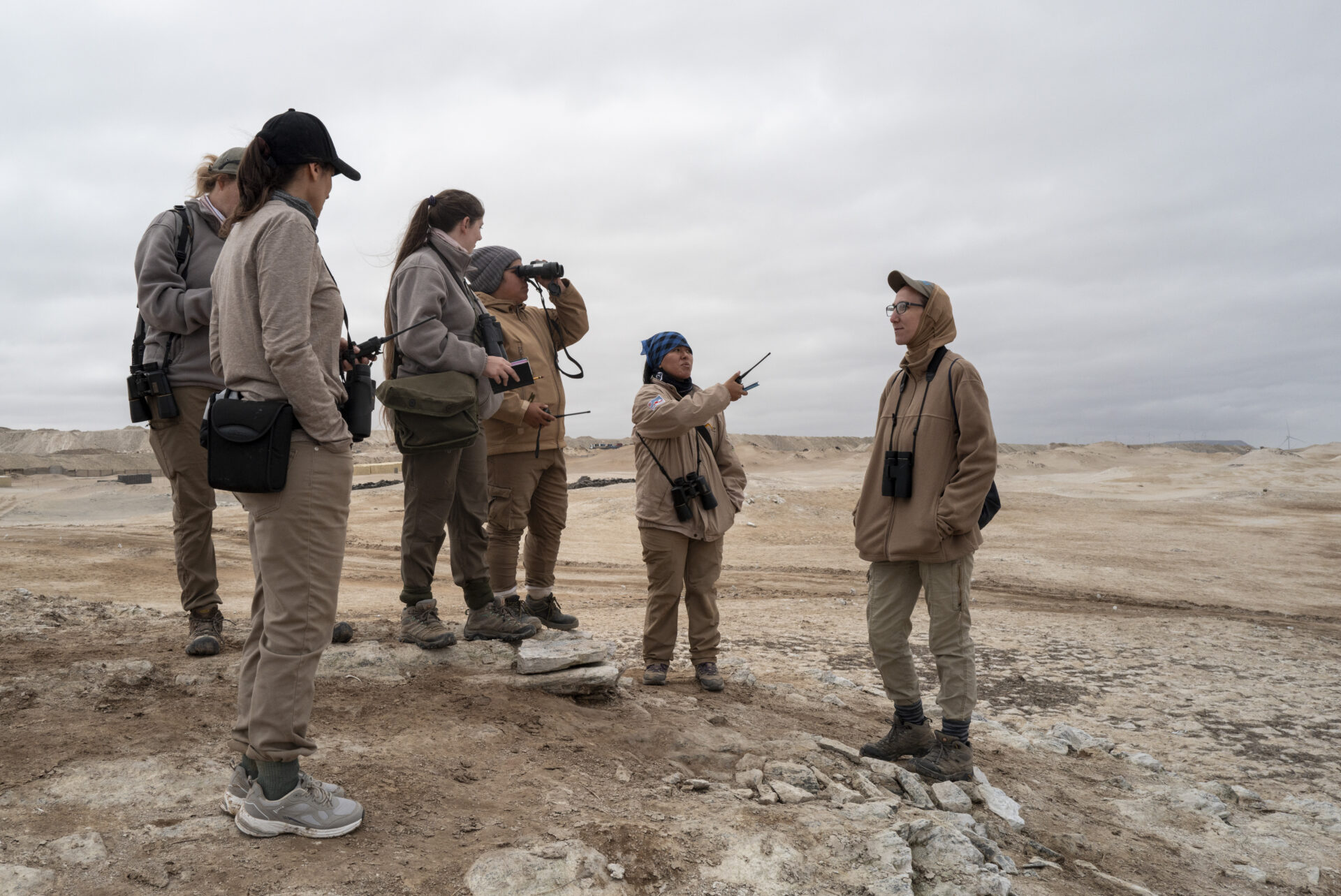 Con este objetivo, Susana y su equipo del Programa Punta San Juan convocaron a biólogos, ingenieros ambientales, veterinarios y a otros profesionales para apoyar con el monitoreo de pingüinos durante la campaña de guano. En esta campaña del 2025, en un desierto desolado, con pocas aves guaneras y con la llegada de trabajadores, el objetivo principal del equipo de voluntarios sería que los pingüinos puedan transitar desde su colonia al mar y viceversa sin ser perturbados por la actividad humana de la campaña.