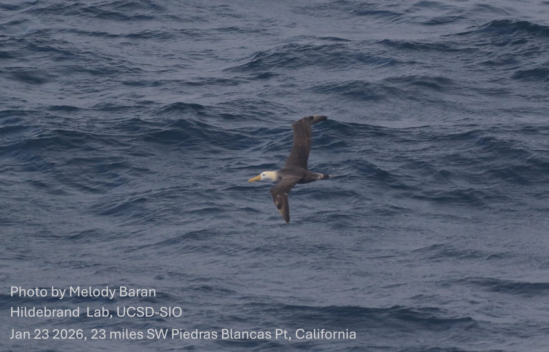 Tammy Russel, investigadora del Instituto Farallon y doctora egresada en la Universidad de San Diego, California, quien iba a bordo del buque, explica a Ladera Sur: “No solamente es la primera vez que se documenta esta especie al norte de Costa Rica, sino que también fuimos capaces de documentar a esta misma ave por tres meses, después de ser vista inicialmente el 23 de enero. Esto quiere decir que esta ave ha rondado por la costa de California por todo este tiempo”.