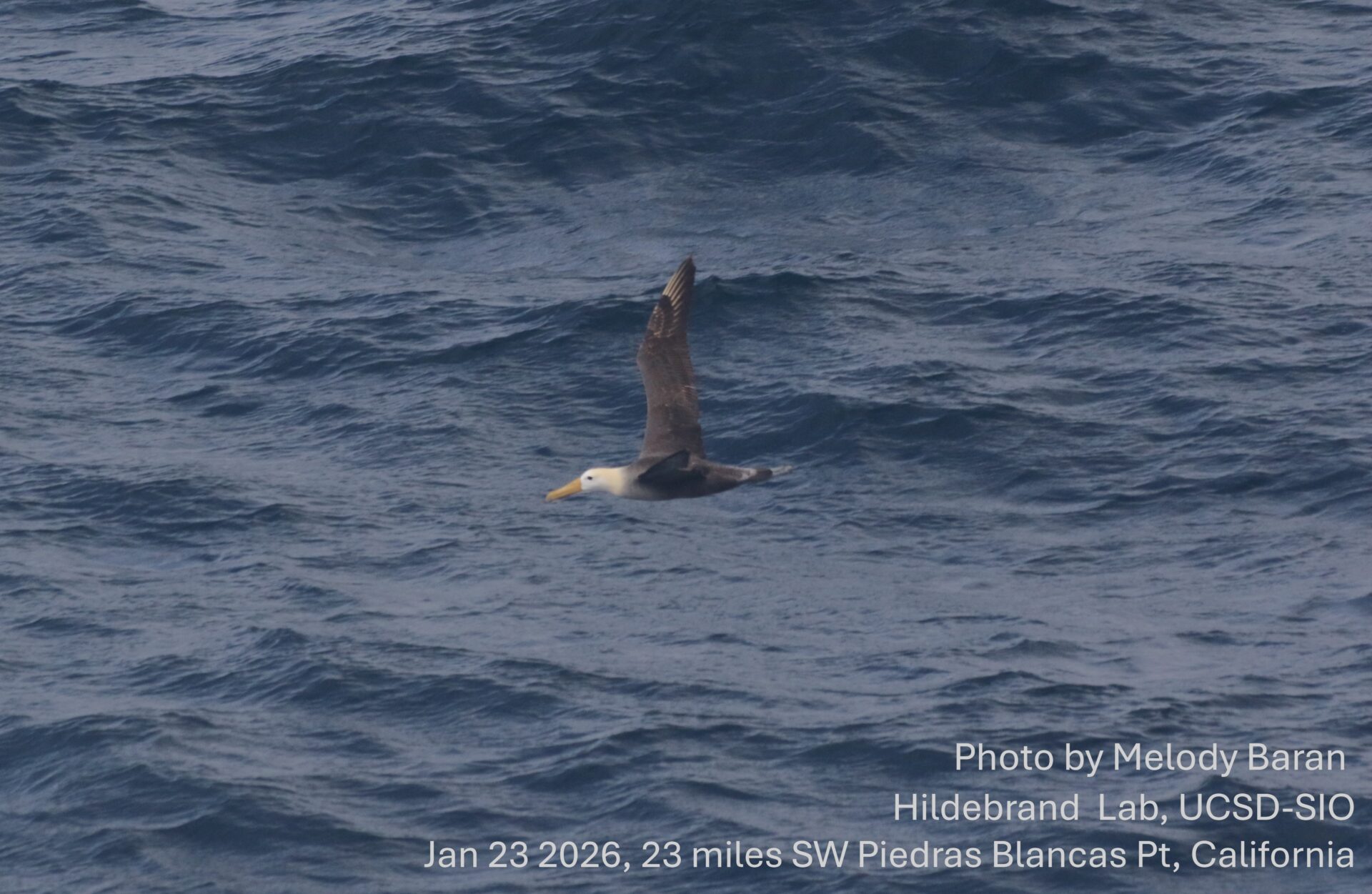 Hace unas semanas, científicos registraron la presencia de un albatros ondeado de las Galápagos (Phoebastria irrorata) en las costas de Piedras Blancas, en California, a 4.800 kilómetros de su hábitat natural.