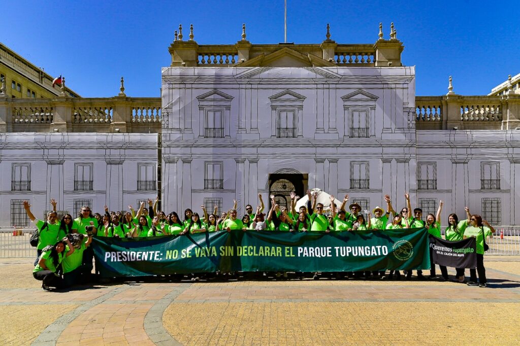 Participantes de la campaña Queremos Tupungato se reunieron este miércoles 19 de noviembre en las afueras del Palacio de La Moneda para entregar una carta al Presidente Gabriel Boric solicitando que se concrete, antes del final de su mandato, la protección oficial de 70.000 hectáreas en los valles de los ríos Olivares y Colorado en el Cajón del Maipo, y con esto completar, junto al ya creado Parque Nacional Glaciares de Santiago, un gran área protegida: el Parque Tupungato, de 142.000 hectáreas a 60 kilómetros de Santiago.