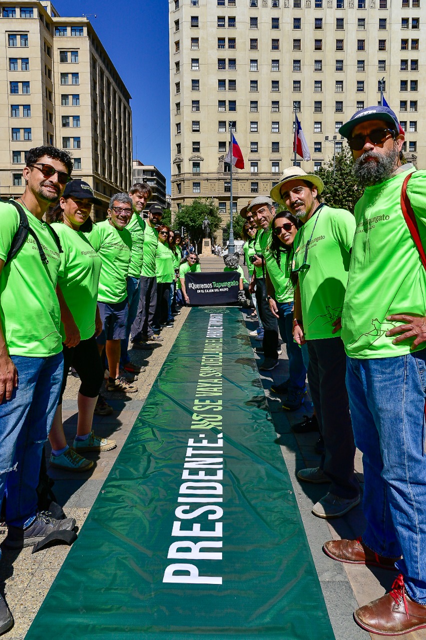 La actividad fue convocada por la campaña ciudadana Queremos Tupungato, que desde el año 2019 impulsa la protección de este gran territorio fiscal. “Venimos a solicitar al Presidente que concrete lo anunciado en su cuenta pública del año 2024, cuando se comprometió a proteger el predio Río Colorado. La creación del área ya fue aprobada en mayo de este año, por el Comité de Ministros para la Sustentabilidad sin embargo, el Gobierno aún no envía a Contraloría General de la República el decreto de  creación del área protegida, y los plazos se acaban”, explicó la coordinadora de la campaña ciudadana, Pilar Valenzuela.