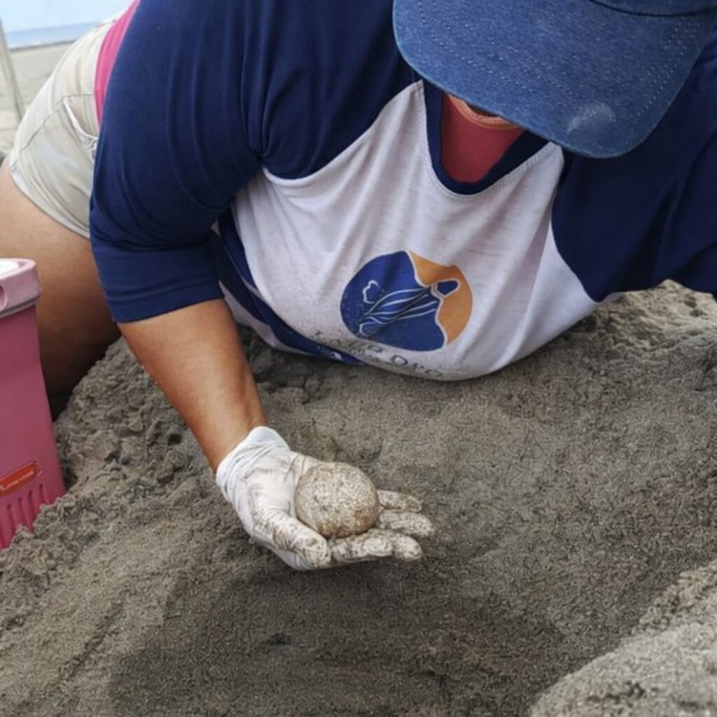 El equipo de Contamos Contigo permaneció monitoreando y resguardando el sitio, hasta que dos días después finalmente anidó. Pesántez reubicó la nidada para que los huevos estén a salvo de los turistas, perros y otras amenazas. Este es un proceso que demanda mucha precisión.