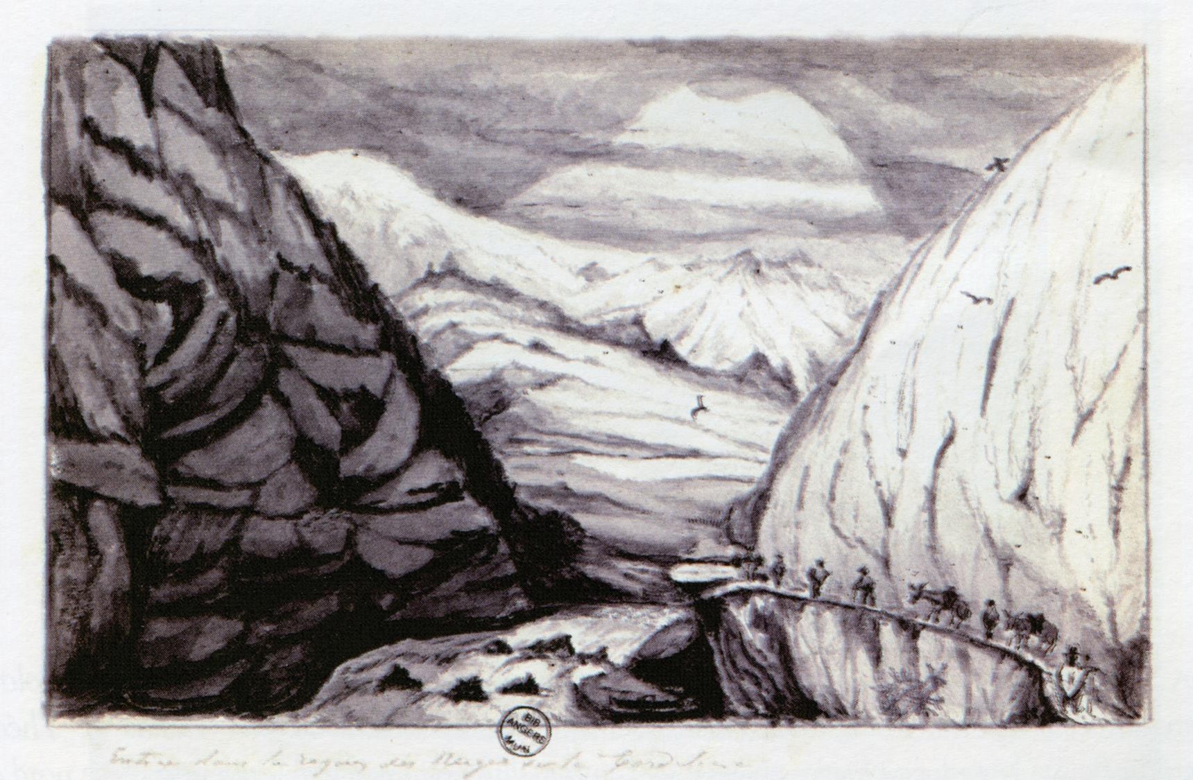 Internarse en Los Andes durante la Colonia, a lomo de mula en el mejor de los casos, requería de temple y coraje. Las crónicas de Alexander Caldcleugh, así como los dibujos de Charles Brand y Théodore Pavie, describen cuestas interminables y farellones rocosos infranqueables.