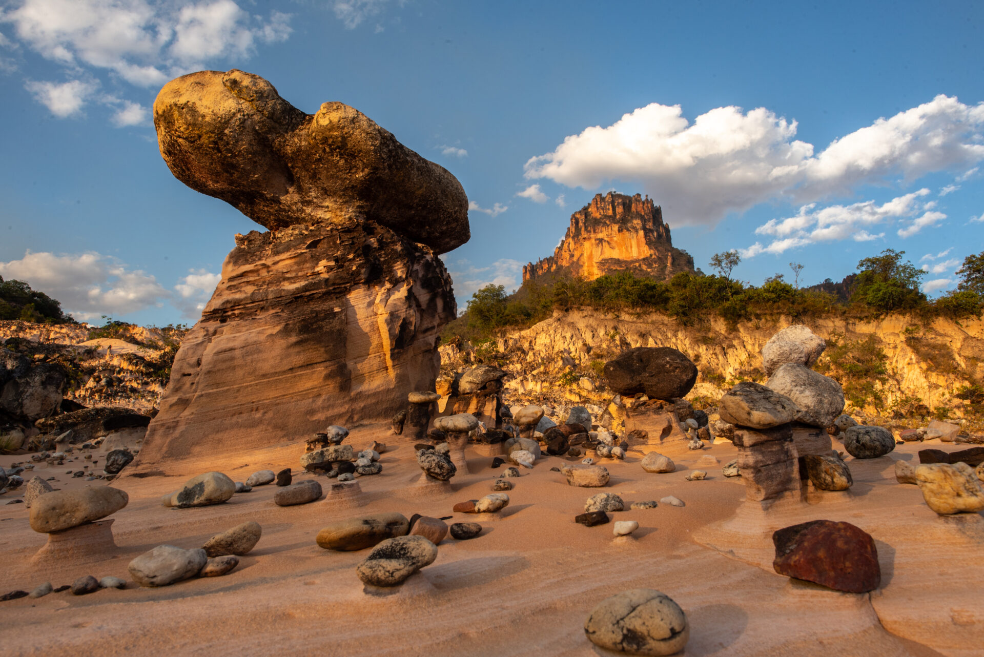 Con el paso del tiempo, las lluvias y los vientos de la estación seca fueron desgastando los materiales más blandos y dejando en pie los más resistentes, hasta esculpir esas columnas tan características. En lo alto, las piedras de mayor dureza actúan como un escudo que protege la base, reproduciendo el mismo proceso que en los grandes desiertos del hemisferio norte, pero en un escenario completamente distinto: el del bioma del Cerrado, una de las sabanas tropicales más biodiversas del planeta.