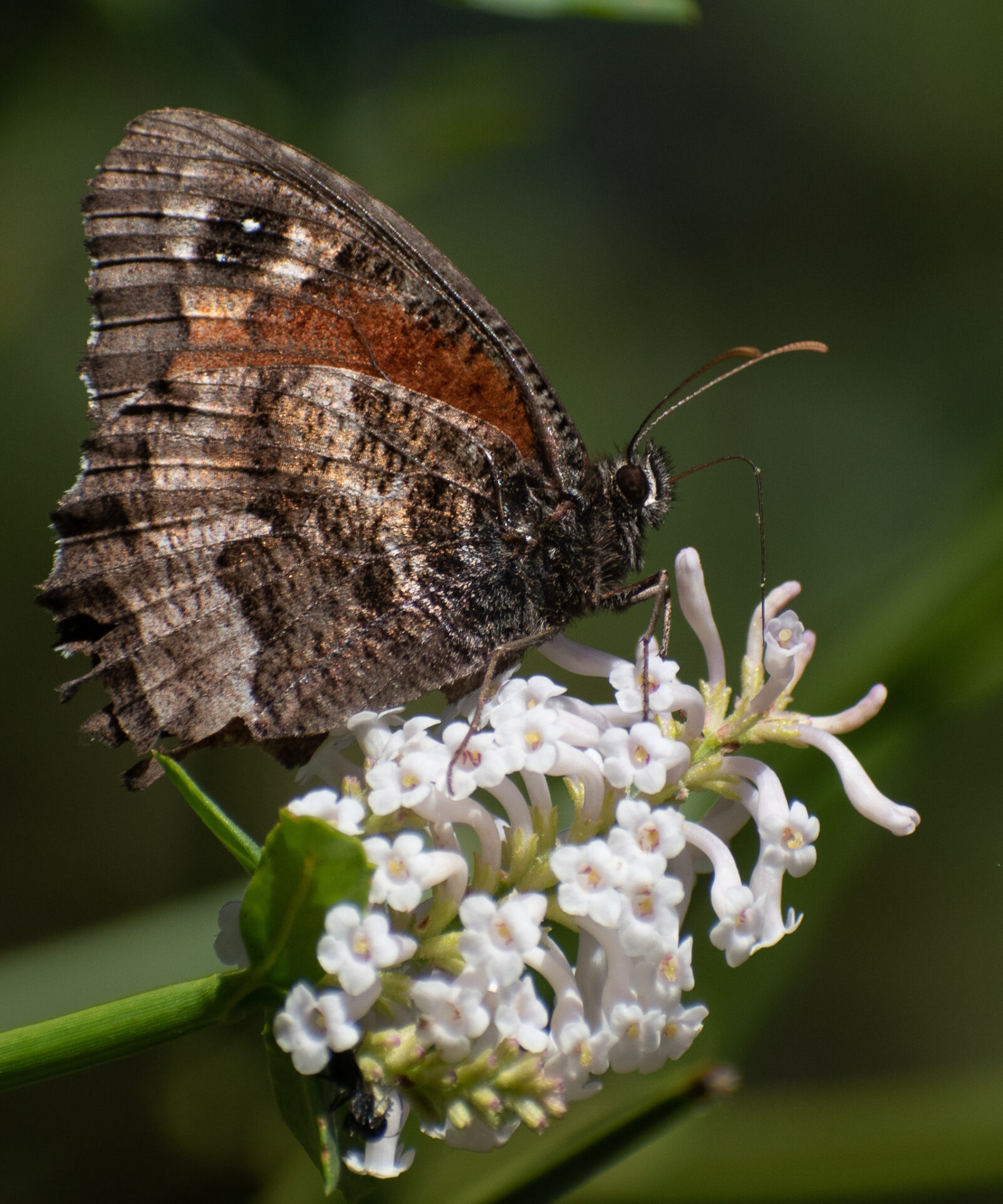 Otra especie de gran tamaño en esta familia es la mariposa grande de matorral (Elina montroli). Es la representante más grande de los satíridos, una subfamilia en Chile, y llega a alcanzar entre 52 y 61 mm. Es también una maestra del camuflaje: su coloración críptica le ayuda a pasar inadvertida con sus alas plegadas en el suelo o la hojarasca. Es posible verla entre Valparaíso y Valdivia, asociada al colihue, de diciembre a marzo.