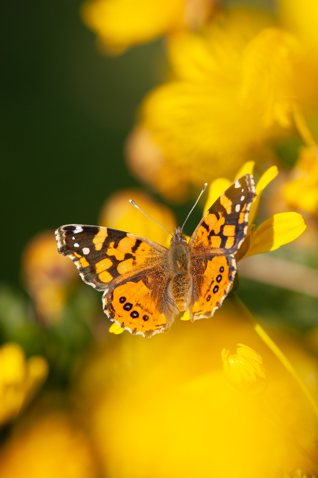 Por otro lado, hay alas que parecen un verdadero cuadro. Yramea cytheris, más conocida como mariposa pintada, tiene estas características. Se distribuye entre la Región Metropolitana hasta Magallanes, asociándose a las violetas silvestres (Viola), donde se desarrollan sus larvas.