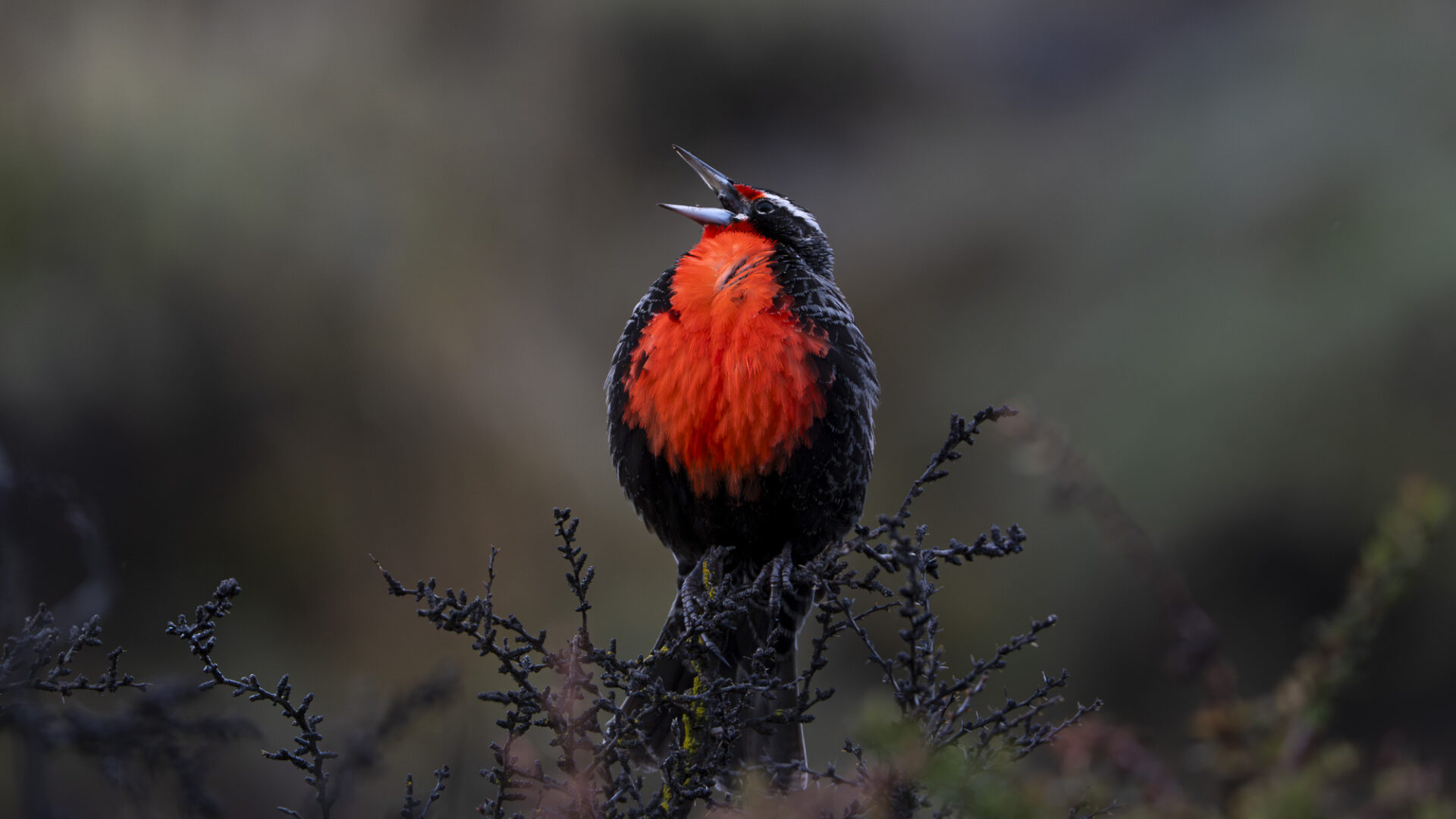 Pero el azul y el gris no eran los únicos colores a resaltar en la zona. La primavera trajo sobre la estepa patagónica un rojo intenso que, como si de una manta carmesí se tratase, cubría la estepa patagónica.