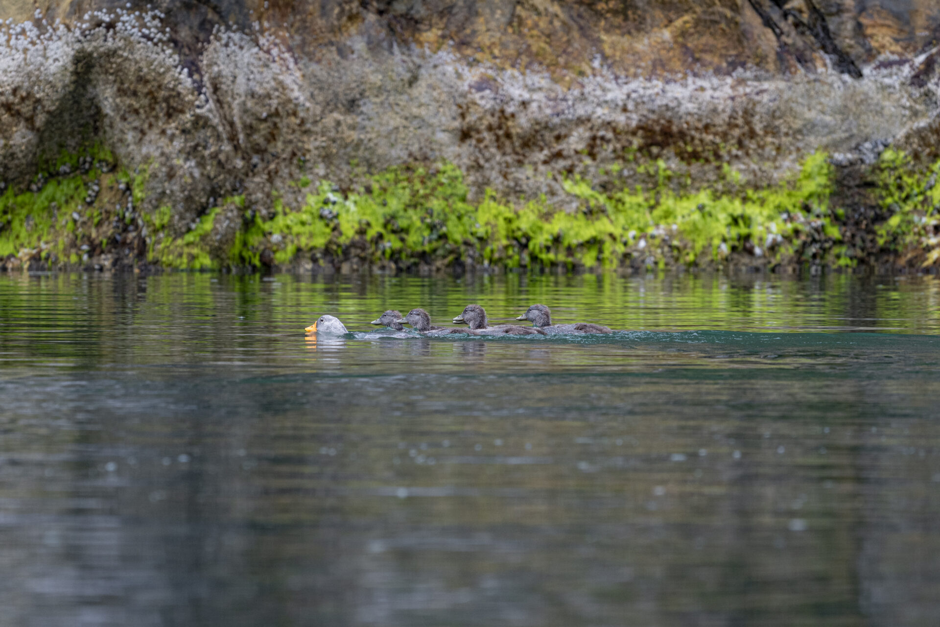 Ignacia Jory observa con fascinación la escena. Frente a ella, un grupo de cantabrias seguían con naturalidad su día, con peleas incluidas, en plena Reserva Nacional Lago Rosselot. Benjamín Valenzuela, mientras tanto, prepara su cámara y lente para registrar el momento.