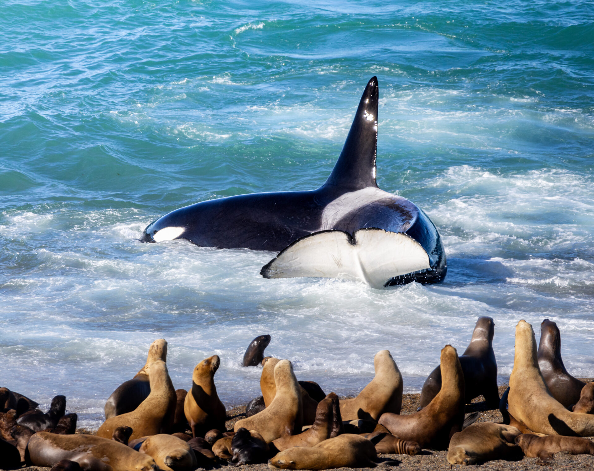 En esta época, las crías de lobo marino salen al mar después de su primera etapa de vida. En ese proceso, pueden encontrarse cara a cara con un animal gigante que arriesga todo por cazarlas: si la orca falla, puede quedar varada y, eventualmente, morir de inanición mientras su presa escapa frente a sus ojos. Es un espectáculo extremo, no solo por lo que implica, sino por ser una de las formas más extremas y raras de supervivencia en la naturaleza, que algunos afortunados tuvieron la suerte de ver en la lobería de Punta Norte, sector de Península Valdés —sitio reconocido como Patrimonio Mundial de la UNESCO—, en la provincia de Chubut, Patagonia argentina.