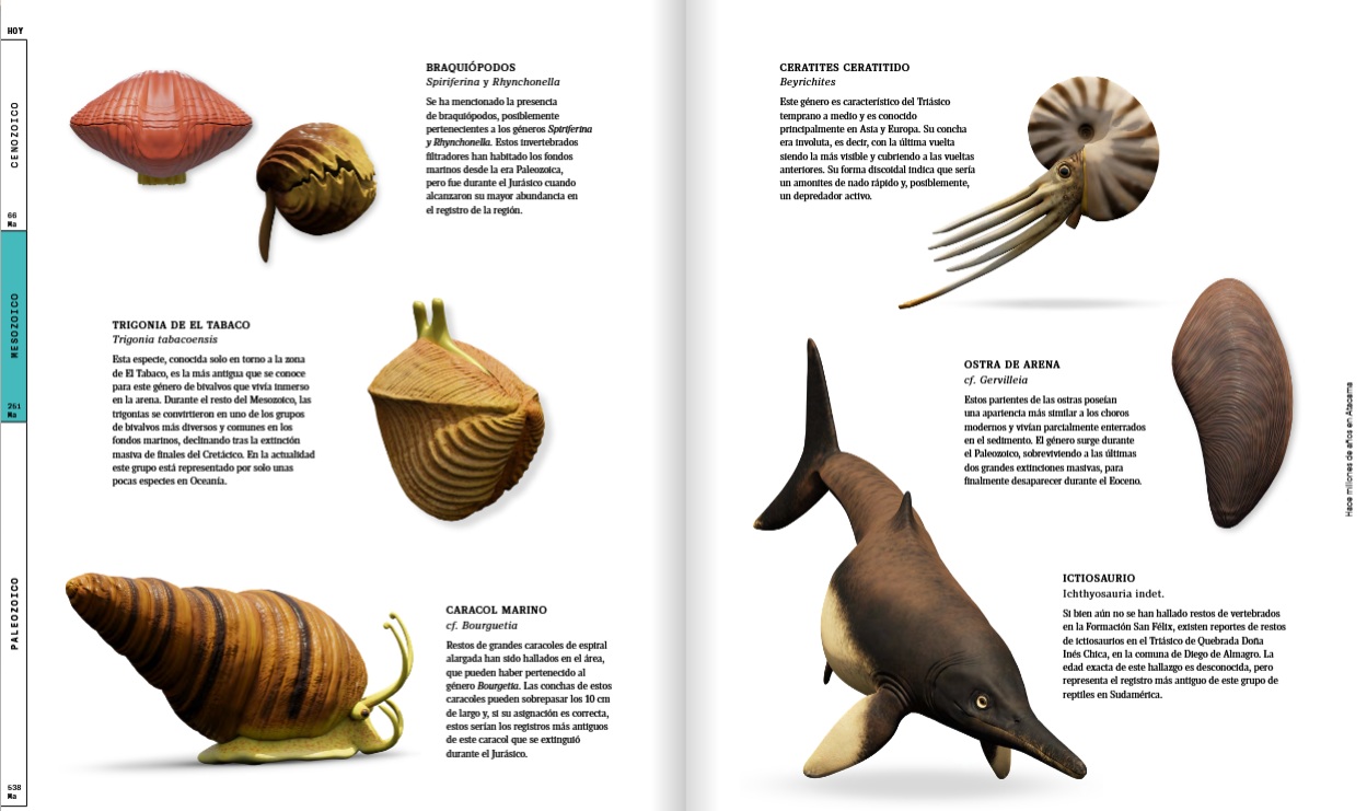 Para Quilodrán, el libro valida que la región de Atacama tiene una singularidad: su rico patrimonio paleontológico. “Esto nos permite reconocer la historia del planeta con ejemplos regionales que abarcan al menos los últimos 400 millones de años. Es una historia universal, pero que está bajada a lo que hemos encontrado en cada una de las comunas de la región”.